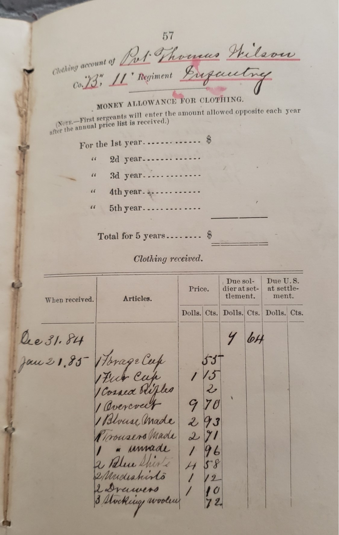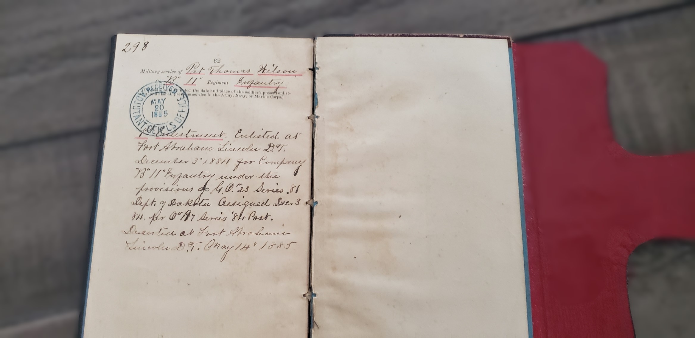 PVT. THOMAS WILSON, CO.B, 11TH INFANTRY ~ ENLISTED AT FORT ABRAHAM LINCOLN DAKOTA TERRITORY DEC. 3. 1884
