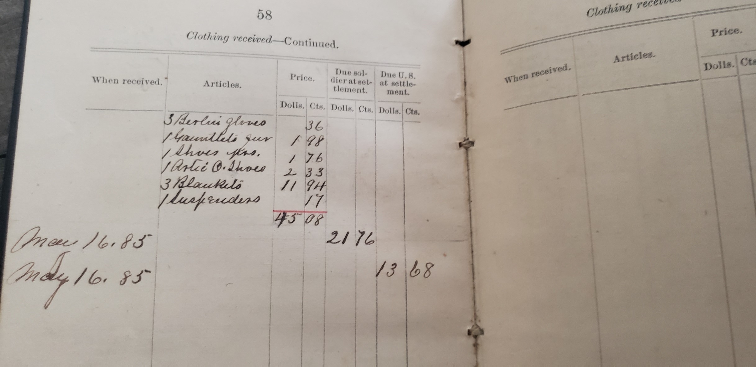 ENTRIES INCLUDE ARTICLES OF CLOTHING RECEIVED AND COST OF EACH