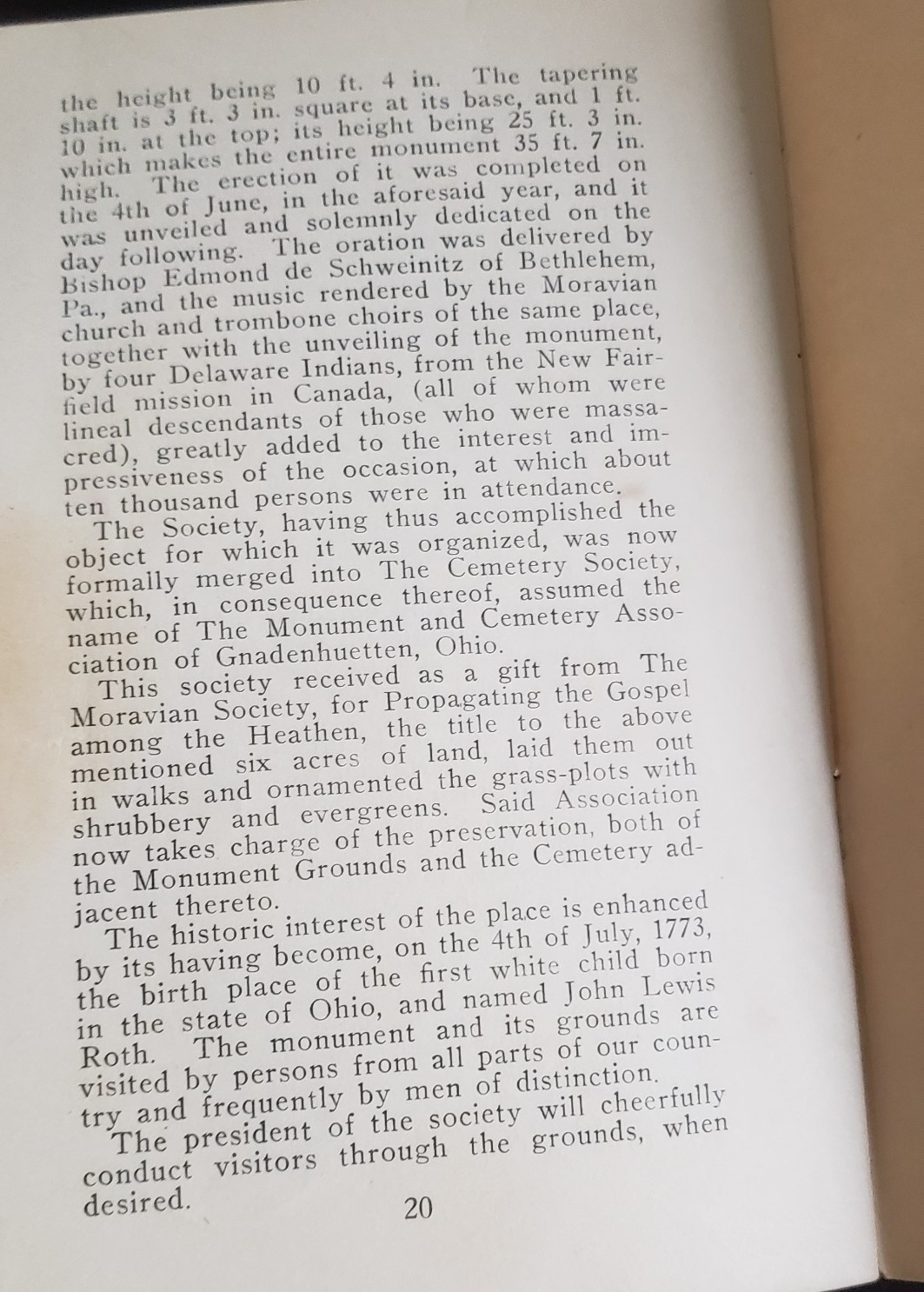 3 3/4 X 6 ~ 20 PAGES AND PUBLISHED BY THE GNADENHUETTEN MONUMENT AND CEMETERY ASSOC.