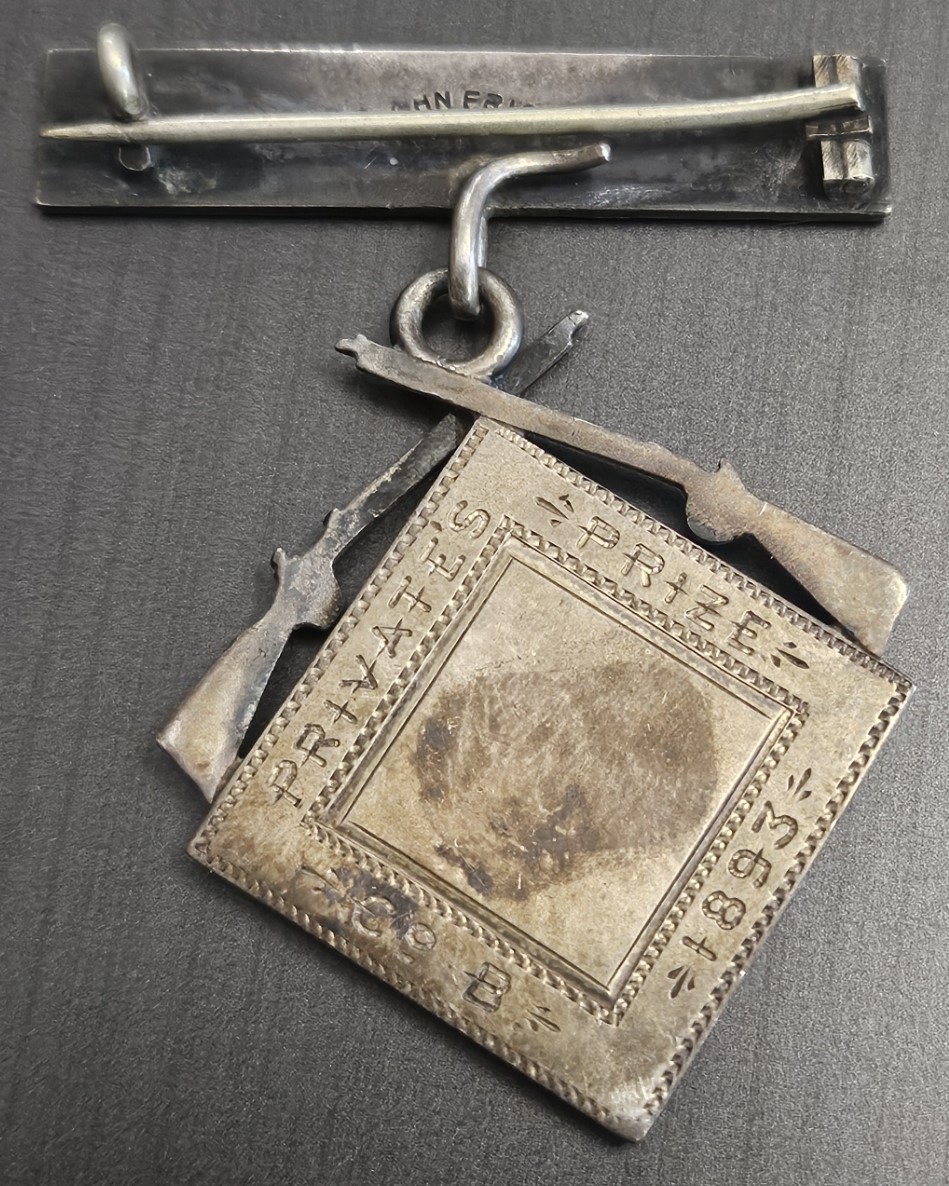 BEAUTIFUL BADGE THAT LOOKS MUCH BETTER IN HAND ~ SHOOTING MEDAL AWARDED TO MELVIN J.T.E. SHELDON IN 1893 ~ BEAUTIFUL DESIGN