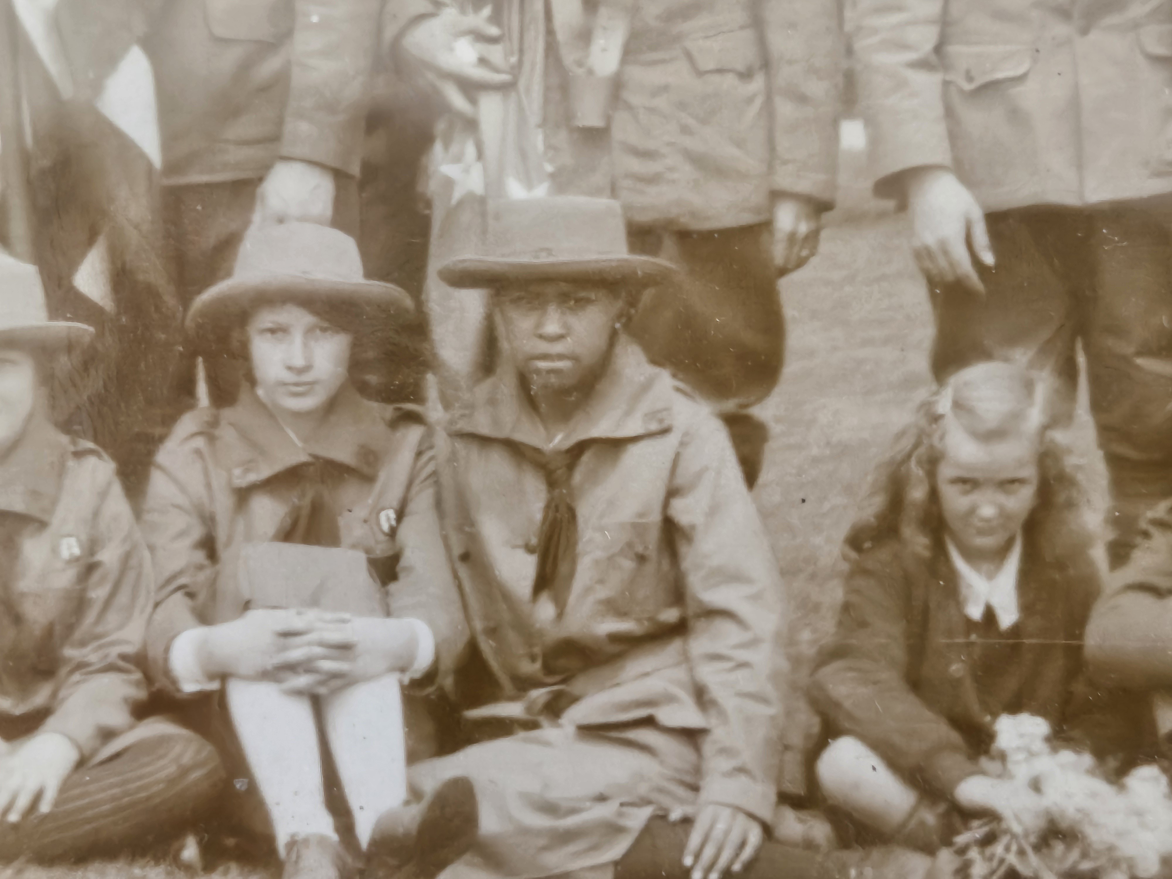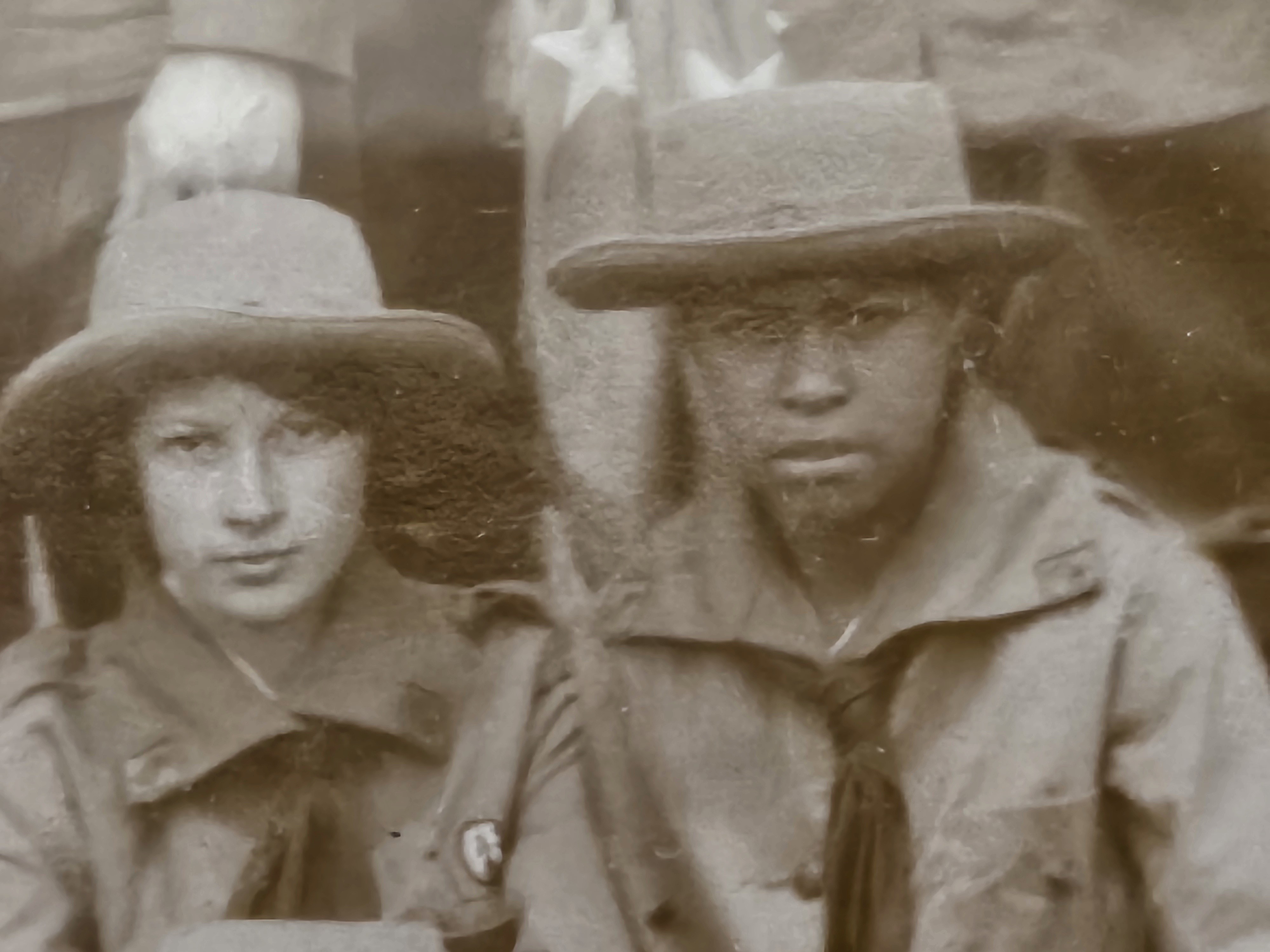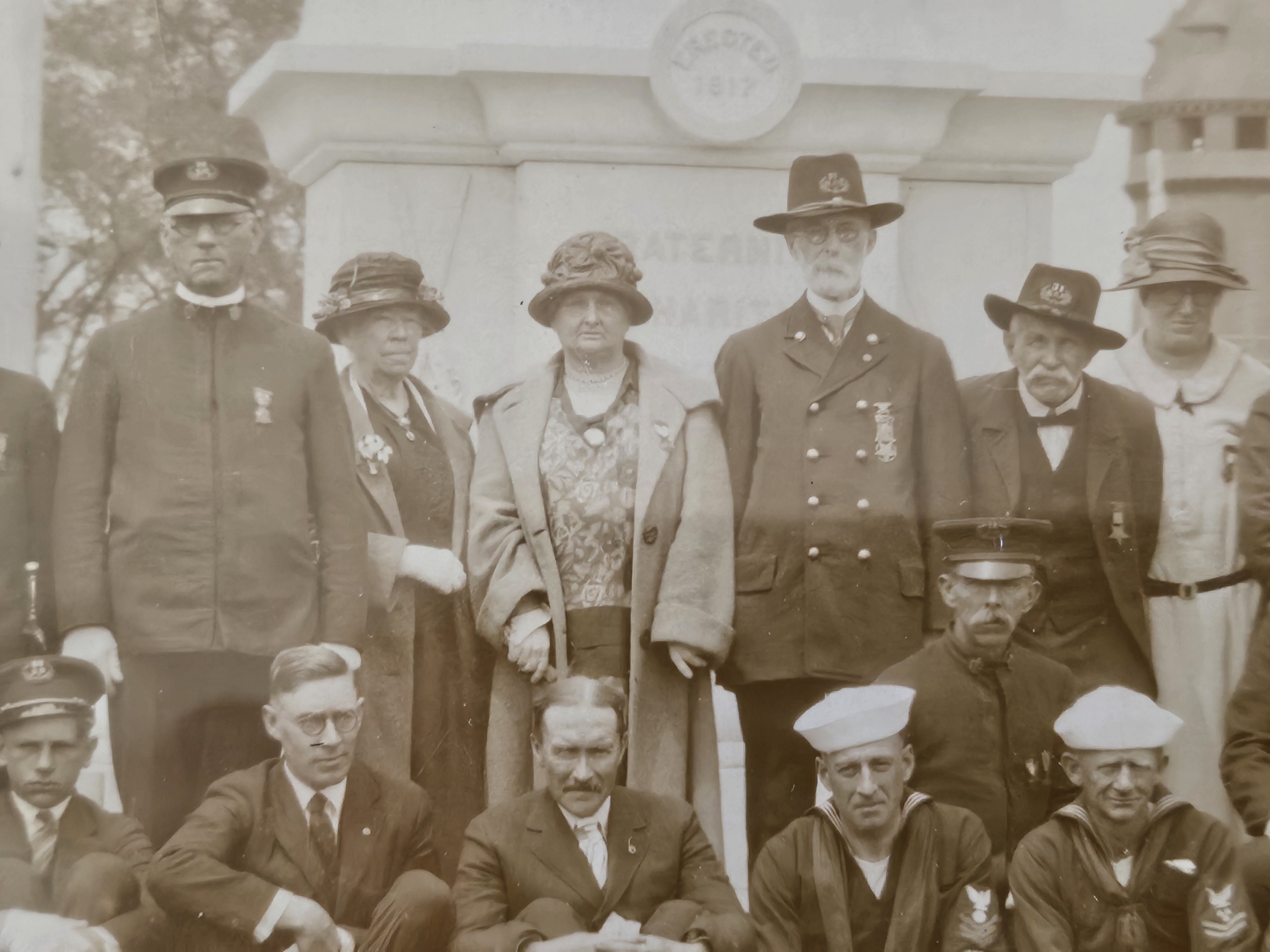 PERCY EDWIN HATCH IDENTIFIED WITH BLACK MARKER, KILLED BY HORSE ACCIDENT IN 1934. THIS INFO HAS BEEN INKED ON REVERSE AS WELL. PHOTO TAKEN AT THE SOLDIERS AND SAILORS MONUMENT. LAWSONS TOWER SEEN IN BACKGROUND. NOTICE THE GROUP OF GIRL SCOUTS ST BOTTOM RIGHT. ONE OF THE GIRLS IS BLACK. TERRIFIC PHOTO ESPECIALLY FOR ANYONE INTERESTED IN SCITUATE HISTORY.