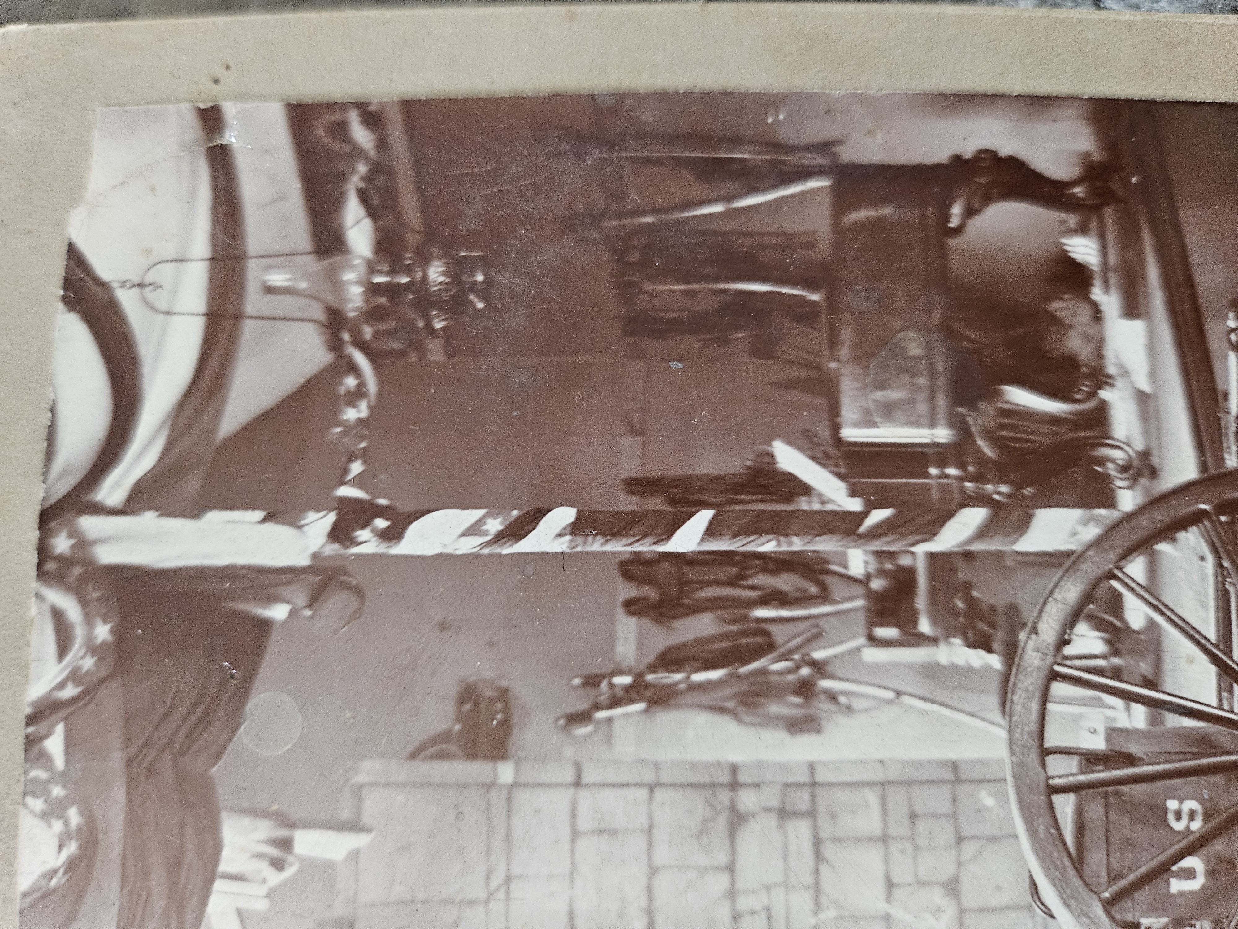 5 x 7 - banner a little faded but you can still make out Livermore, Maine, at the bottom. - (Etna Kimball Post 38 ). Swords seen at right above the piano. Great photo.