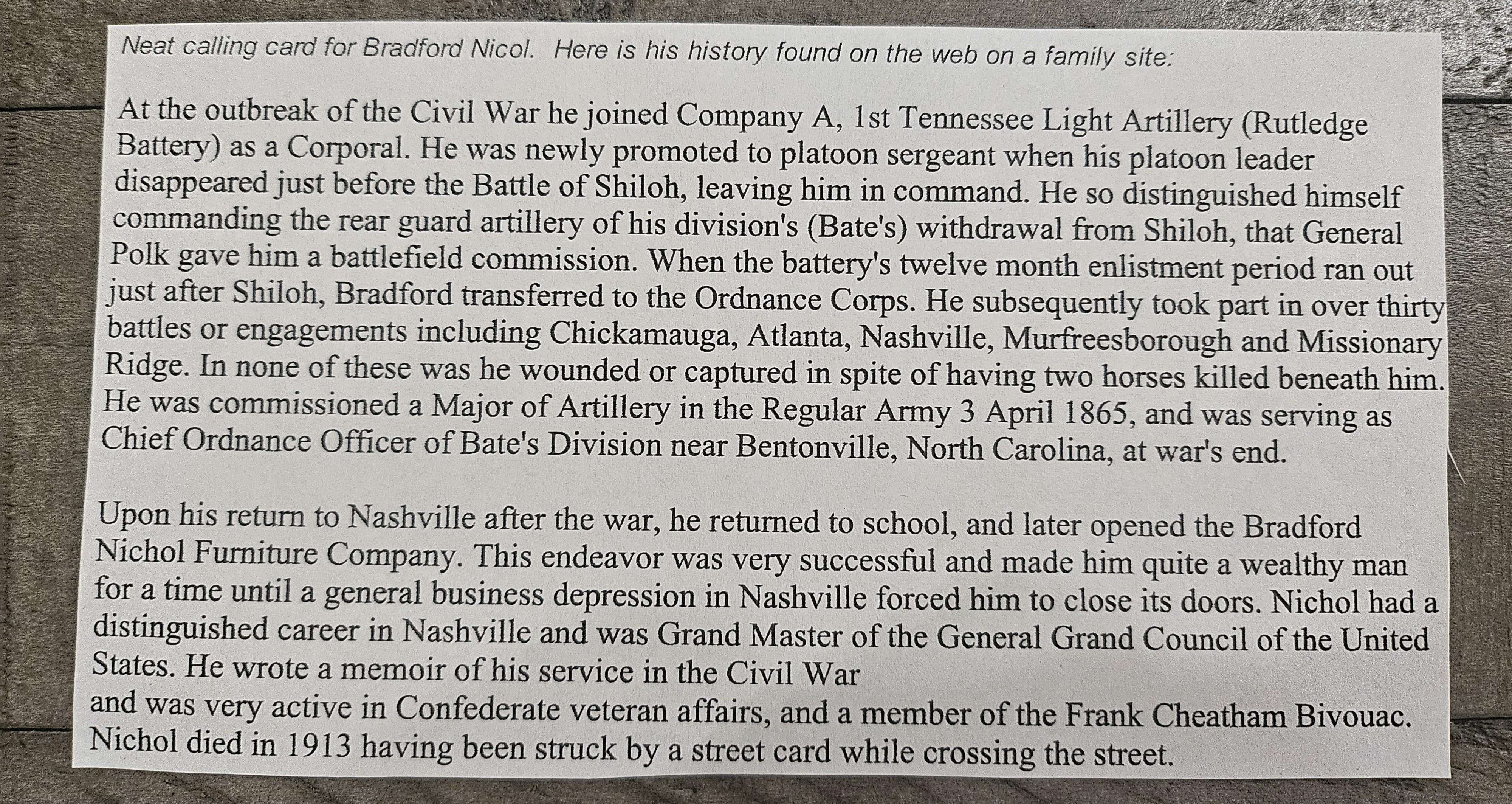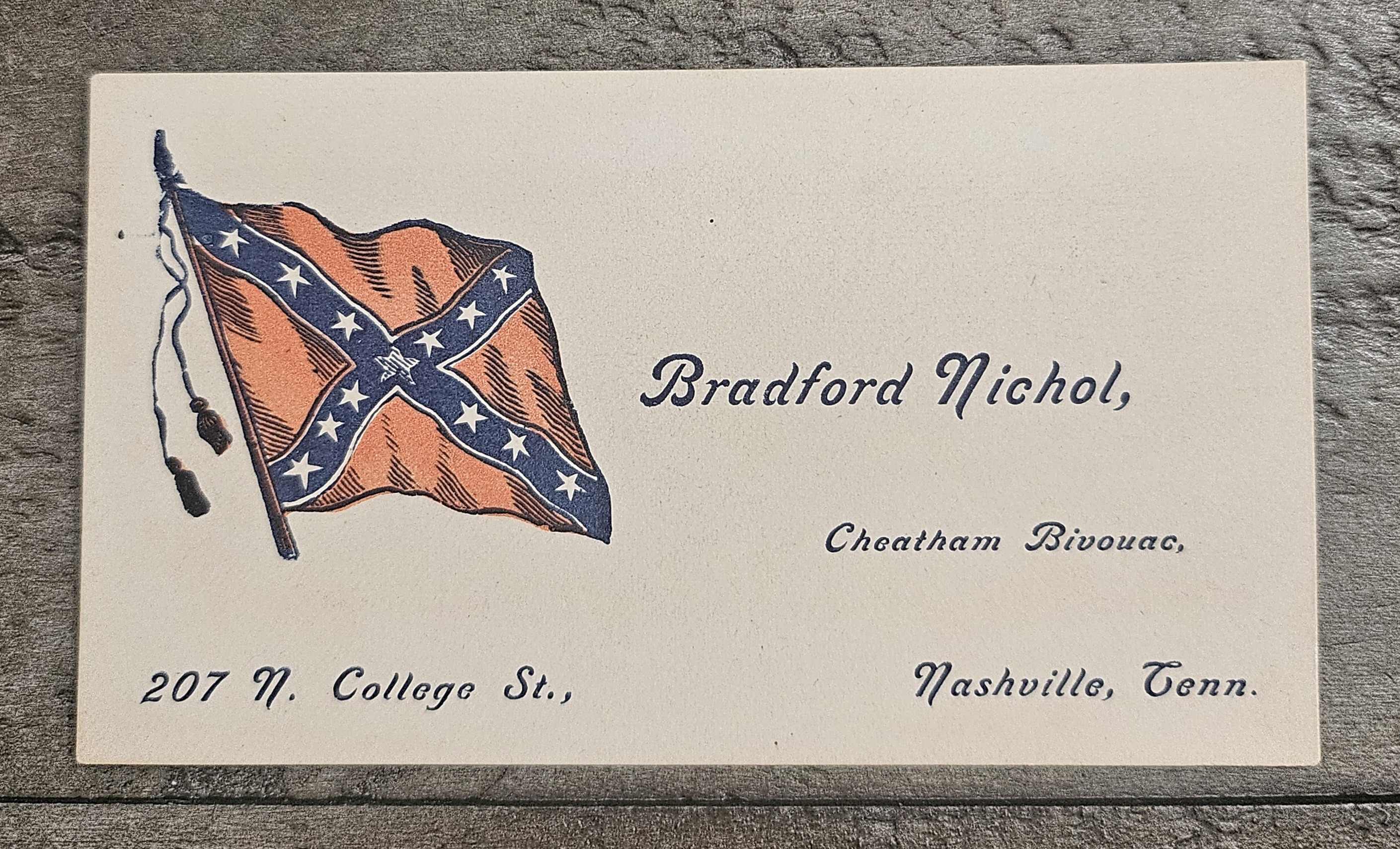 UCV CALLING CARD - BRADFORD NICHOL NASHVILLE TENN. - ARTILLERY
