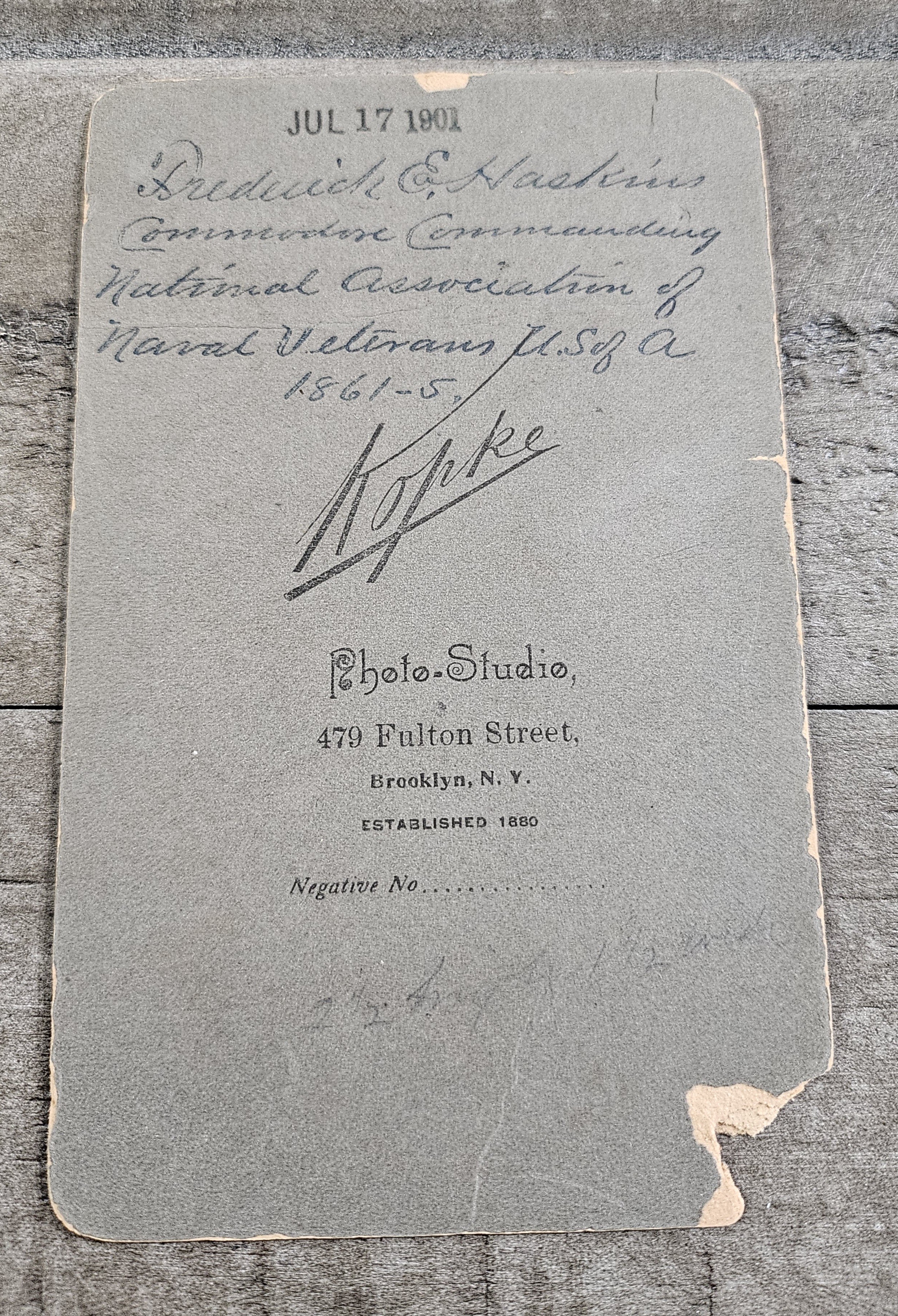 3.5 x 5.5 Photo - FREDERICK E. HASKINS, COMMODORE COMMANDING NATL. ASSOC. OF NAVAL VETERANS U.S. OF A.