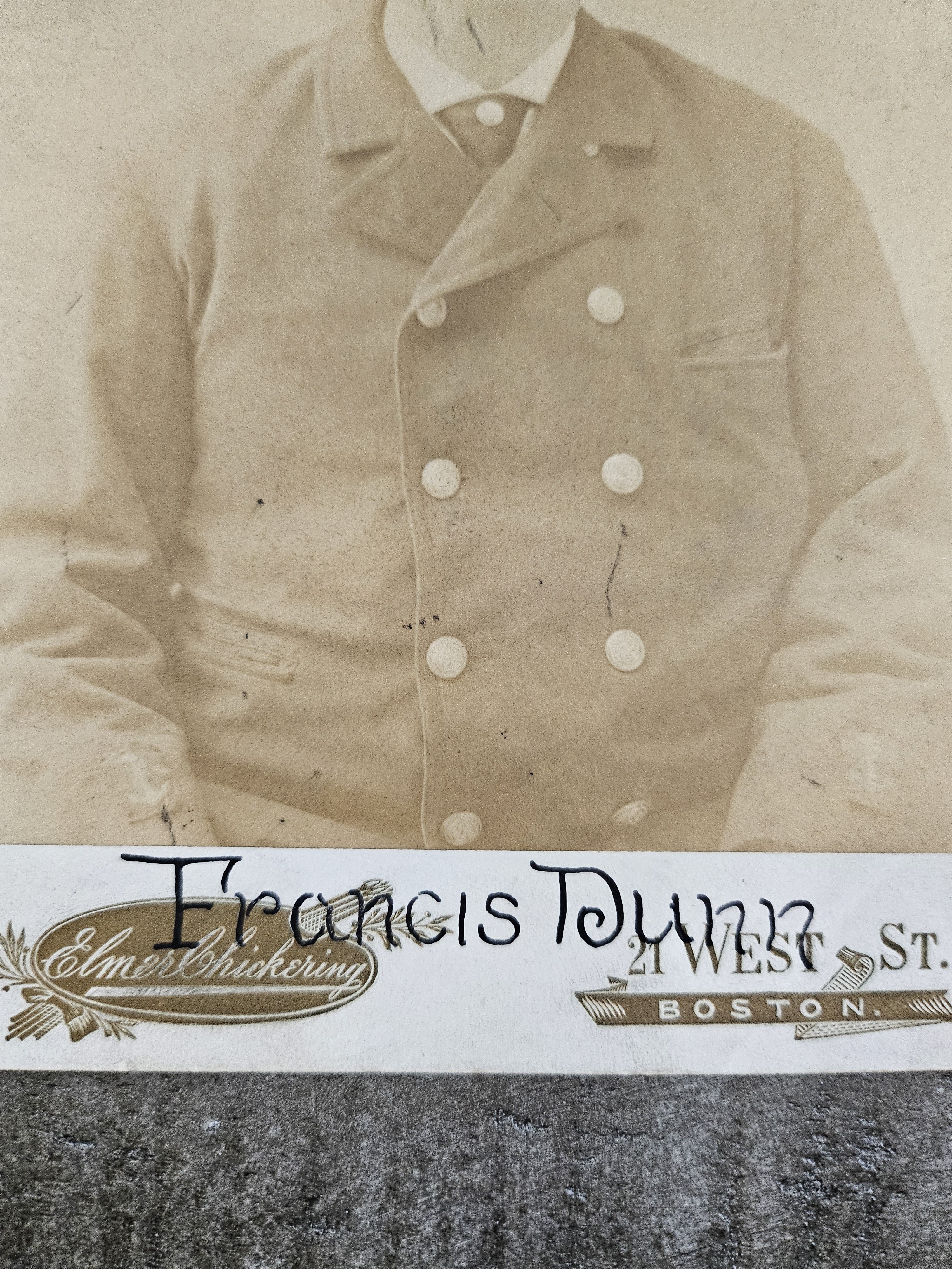 Cabinet Card Photo - Francis Dunn in NAVAL Uniform. Nicely inked just as the others are from Boston, Mass. Most likely a member of the Kearsarge Association of NAVAL Veterans.