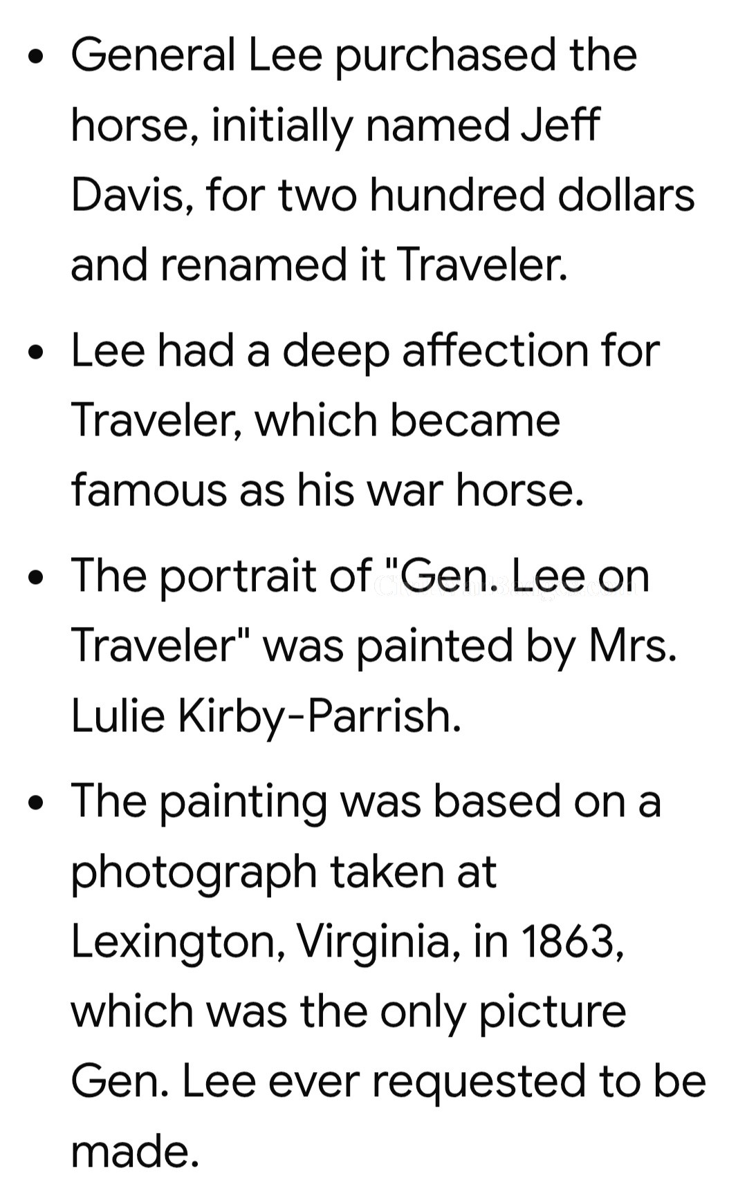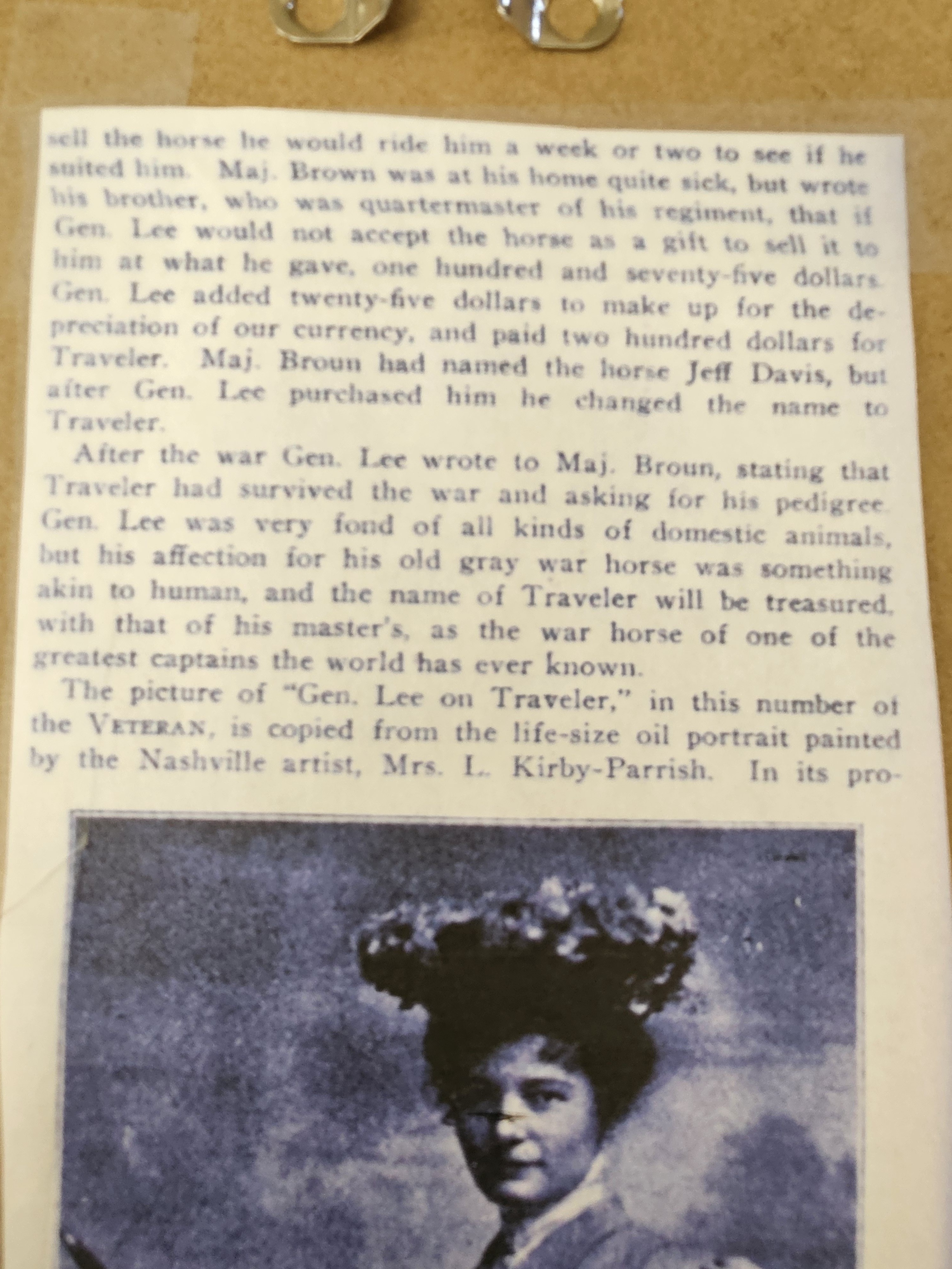 GENERAL LEE ON TRAVELER LEXINGTON VA 1868 - MRS. L. KIRBY PARRISH PAINTING