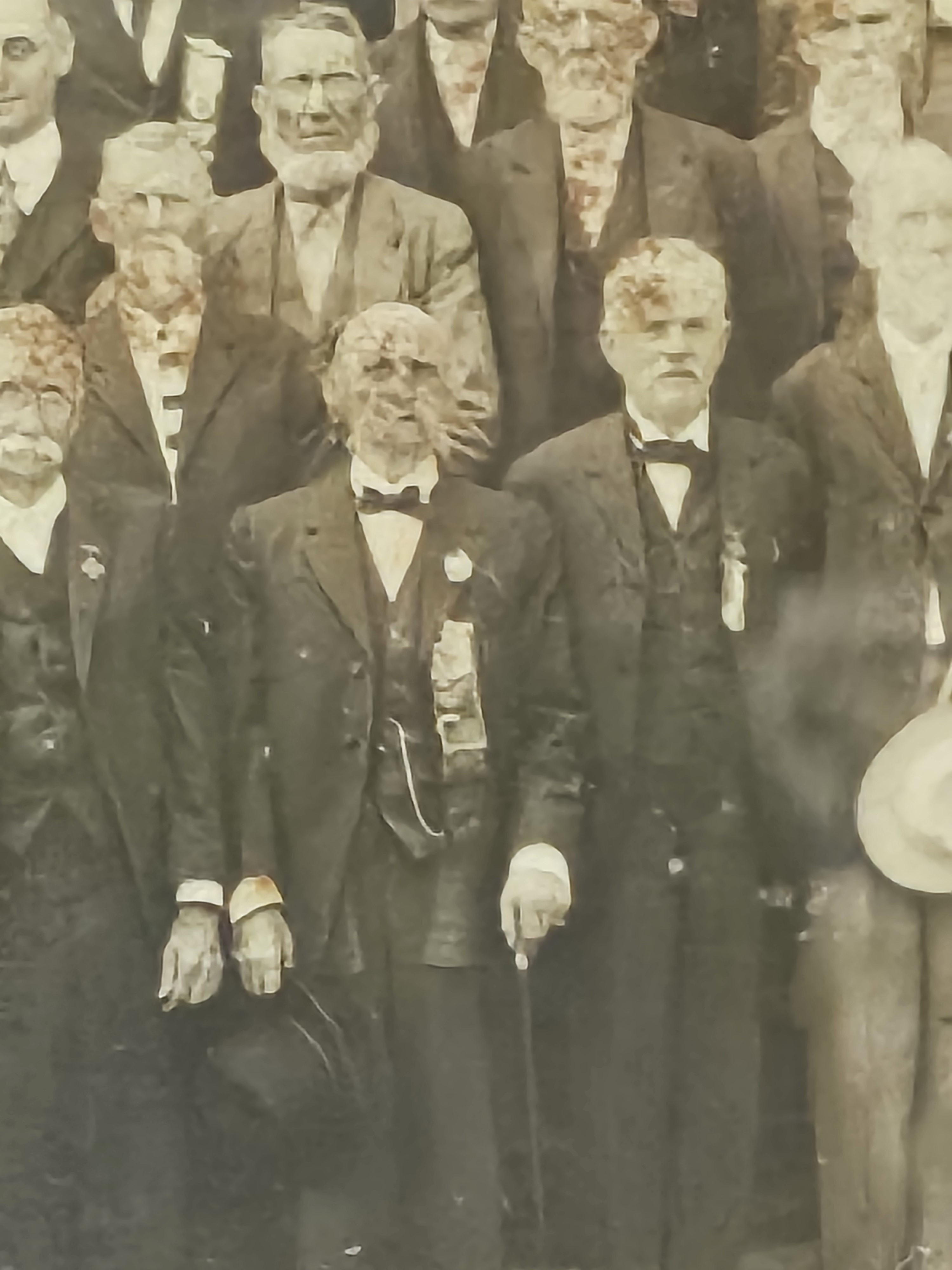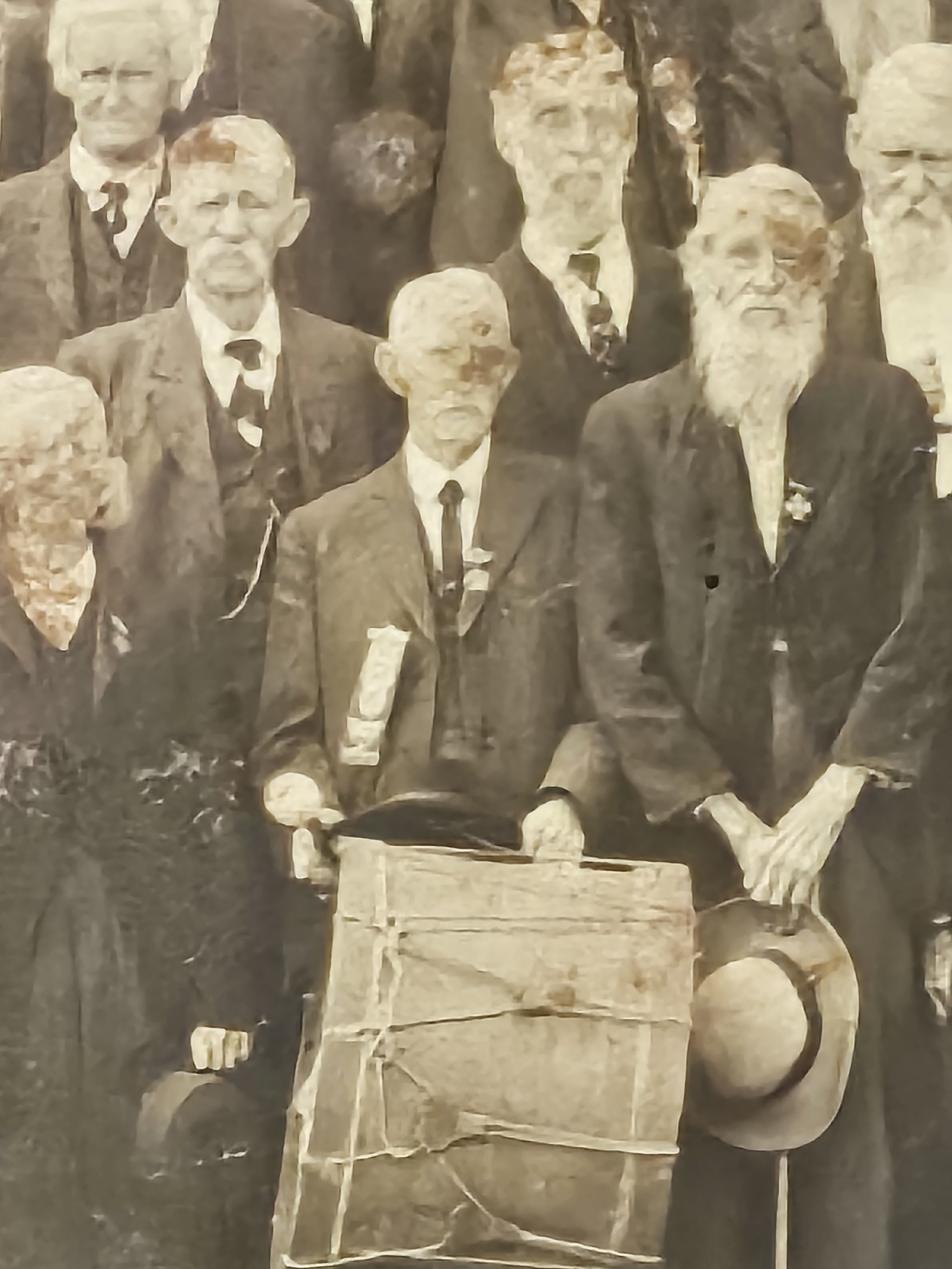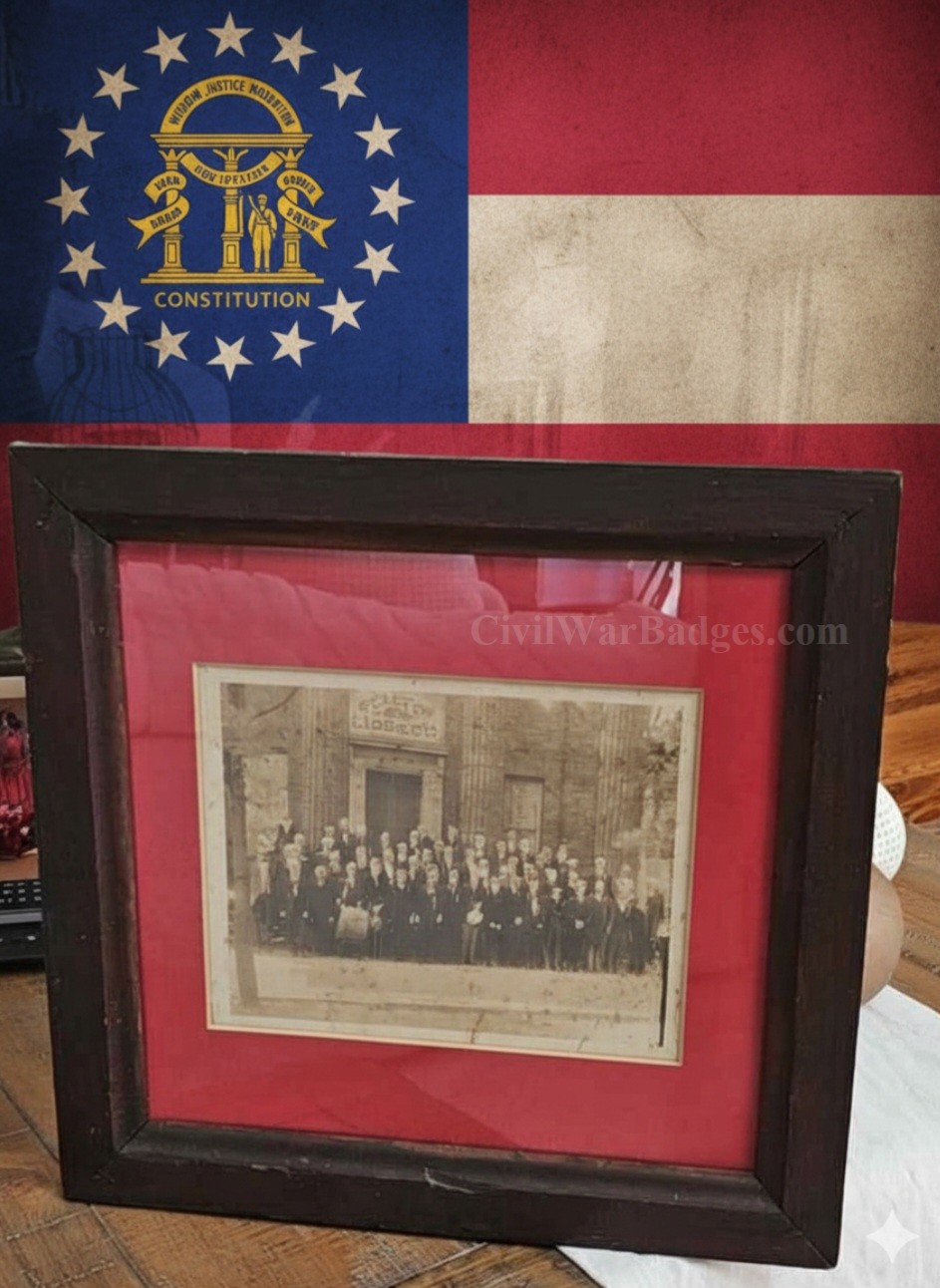 Authentic photo of Confederate Veterans in front of the Masonic Hall in Sandersville, Georgia. I found a nice write up on Harris Sparks who is holding the drum. He served in CO. B, 59th GA Volunteer Infantry. See attached info in pictures above for all the details. His drum is in the local museum.