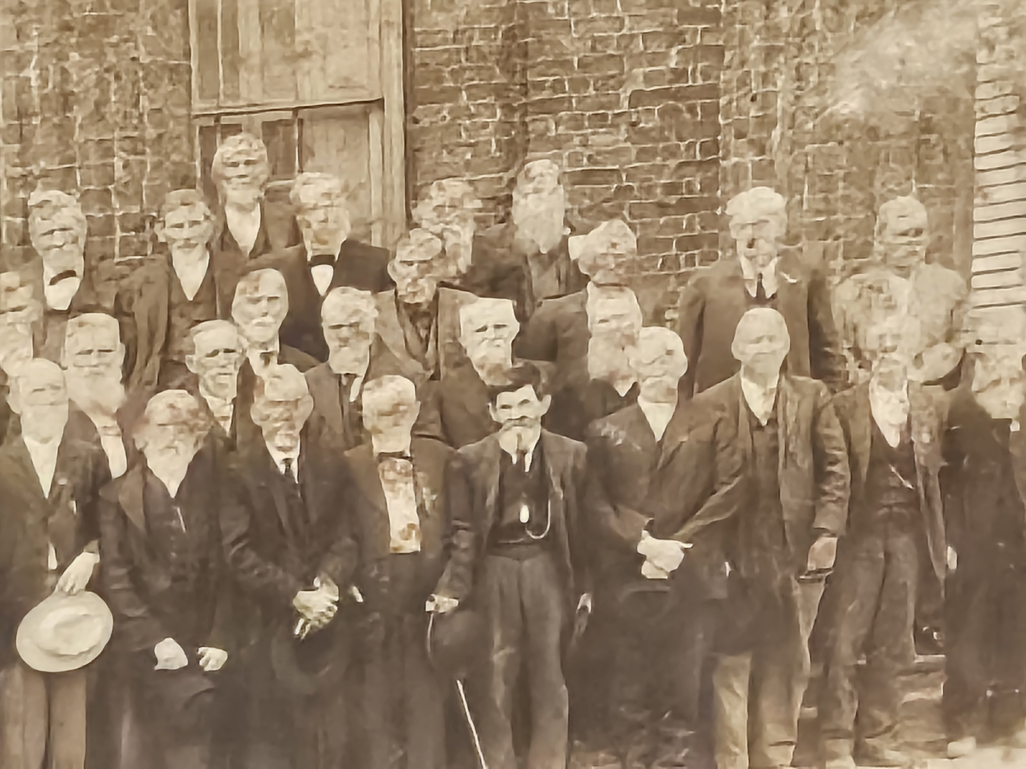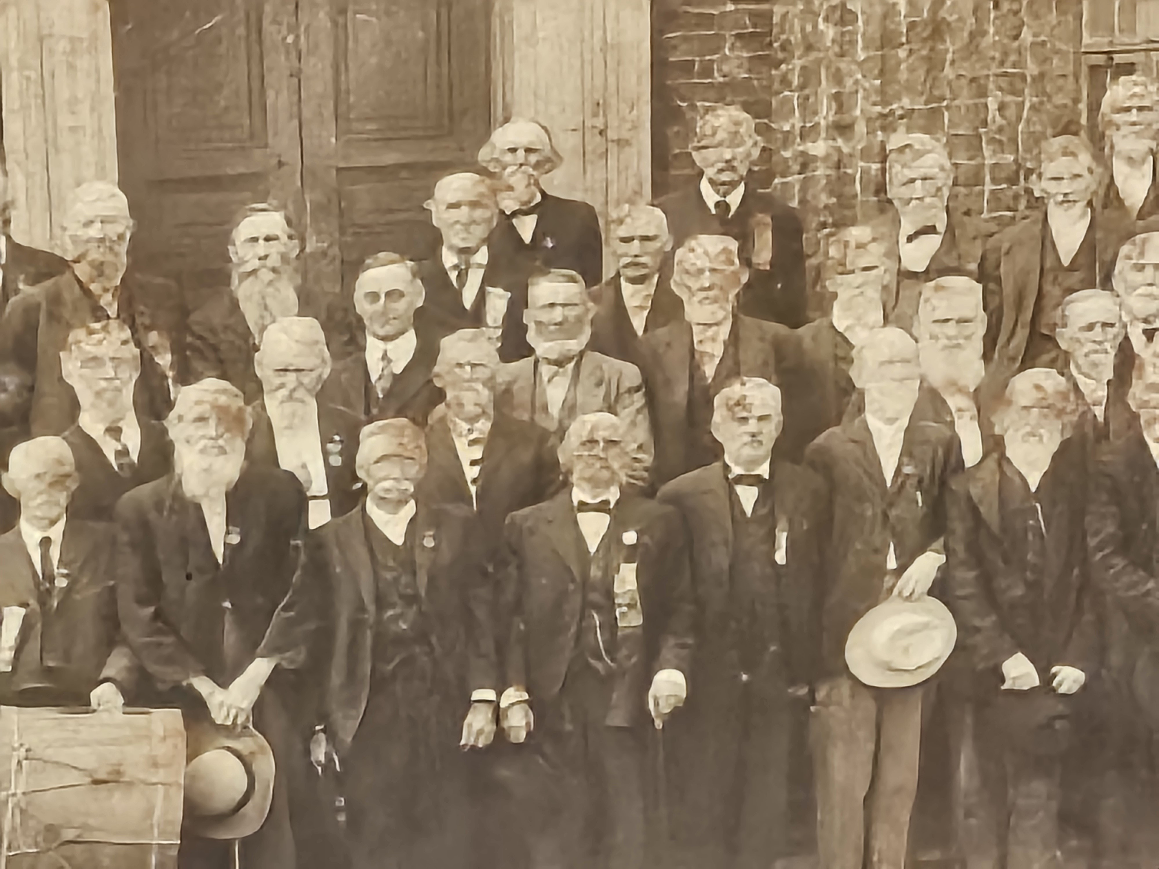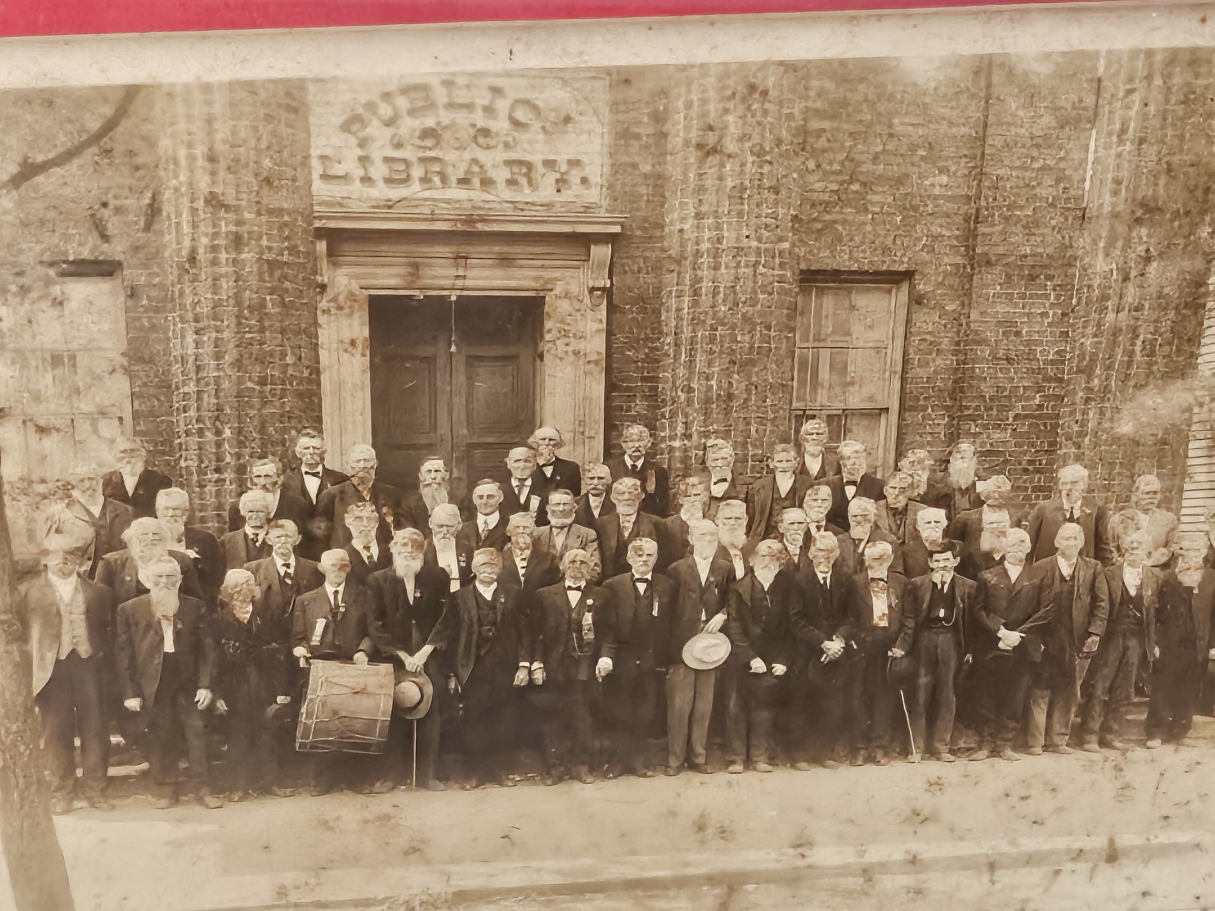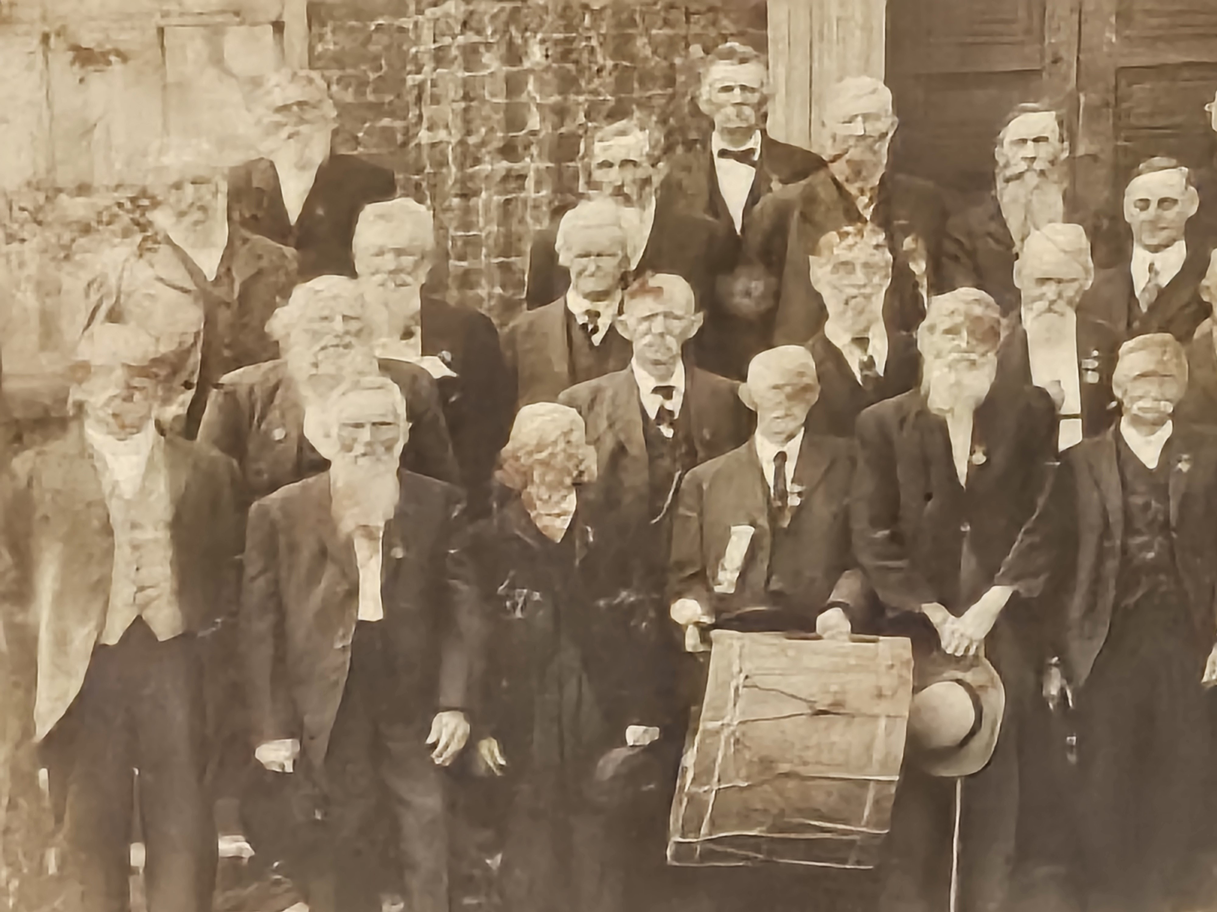 Authentic photo of Confederate Veterans in front of the Masonic Hall in Sandersville, Georgia. I found a nice write up on Harris Sparks who is holding the drum. He served in CO. B, 59th GA Volunteer Infantry. See attached info in pictures above for all the details. His drum is in the local museum.