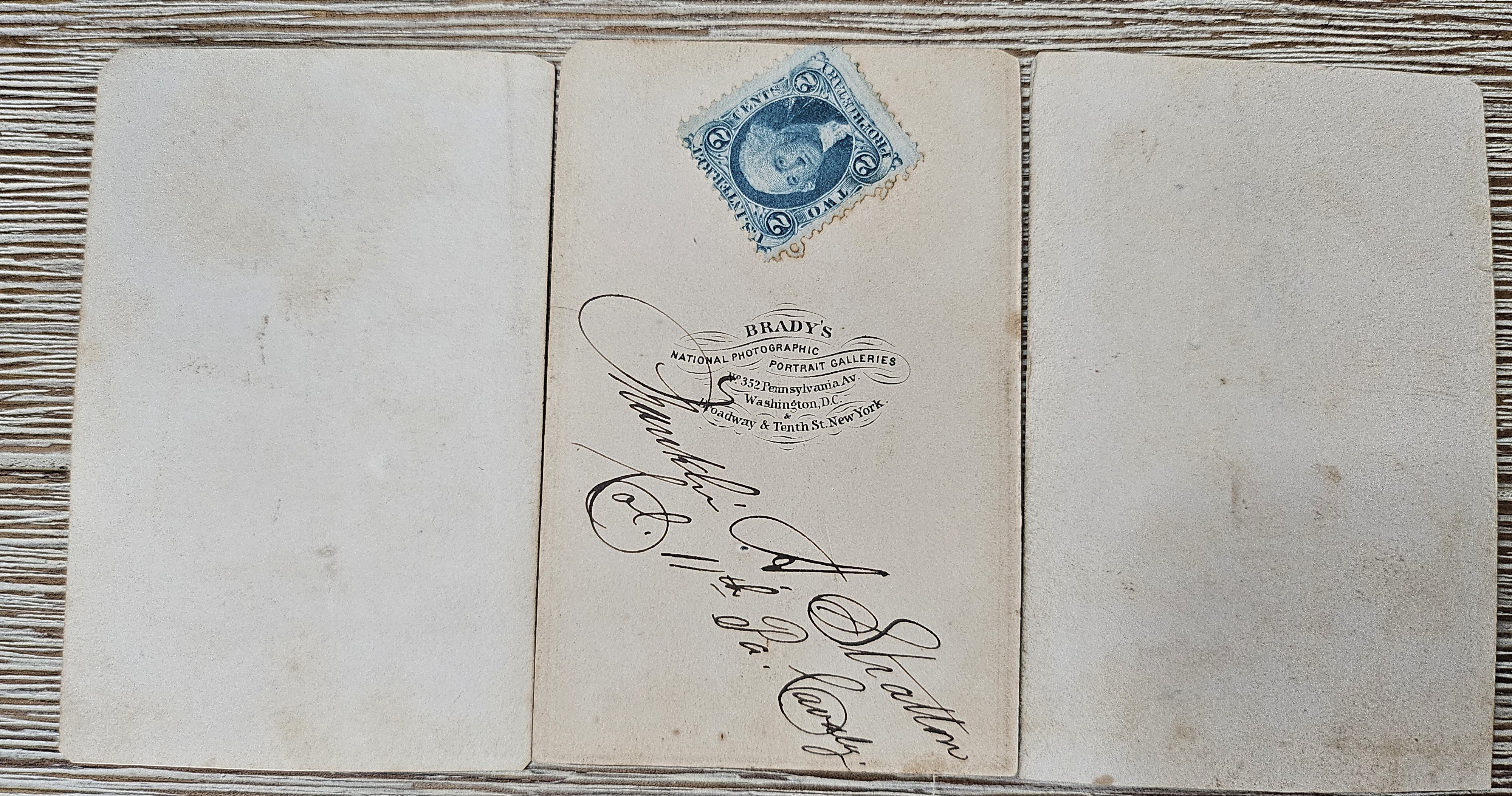 Franklin Asa Stratton (SIGNED AS COLONEL ON REVERSE) ~Residence Fort Dodge IA; 29 years old. Enlisted on 8/15/1861 as a Captain. On 9/21/1861 he was commissioned into "A" Co. PA 11th Cavalry He was Mustered Out on 8/13/1865 He was listed as: * Wounded (date and place not stated) (Wounded twice, dates unknown) Promotions: * Major 9/1/1862 * Lt Colonel 9/19/1864 * Colonel 5/15/1865 (Estimated day) * Brig-General 8/1/1865 by Brevet