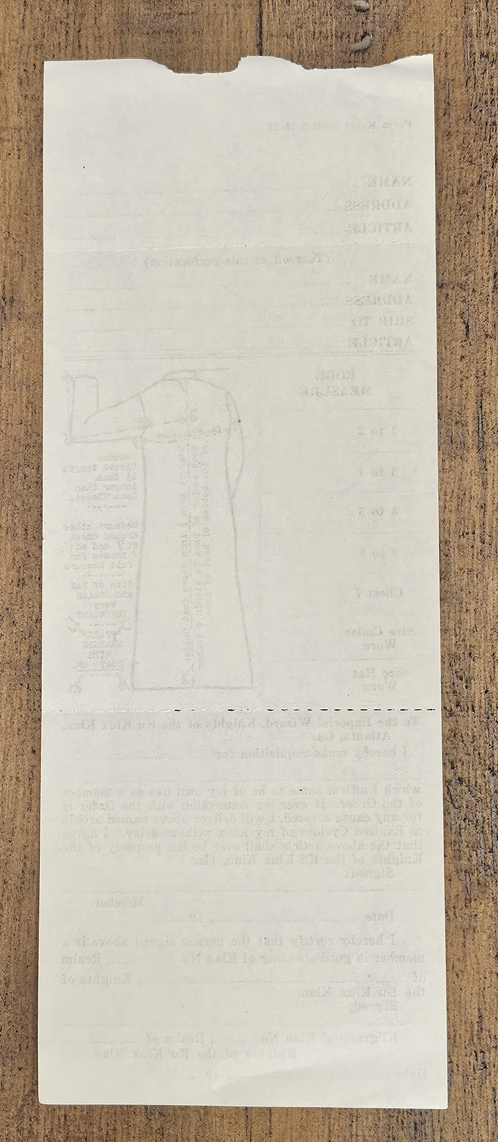 KKK ROBE ORDER FORM - AUTHENTIC