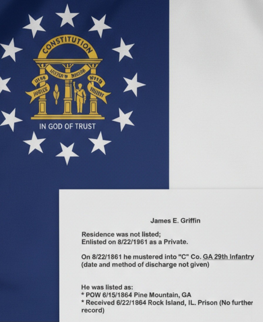 JAMES E. GRIFFIN, MEMBER OF CO. C, 29TH GEORGIA INFANTRY - NICE INKED ID BELOW HIS PHOTO