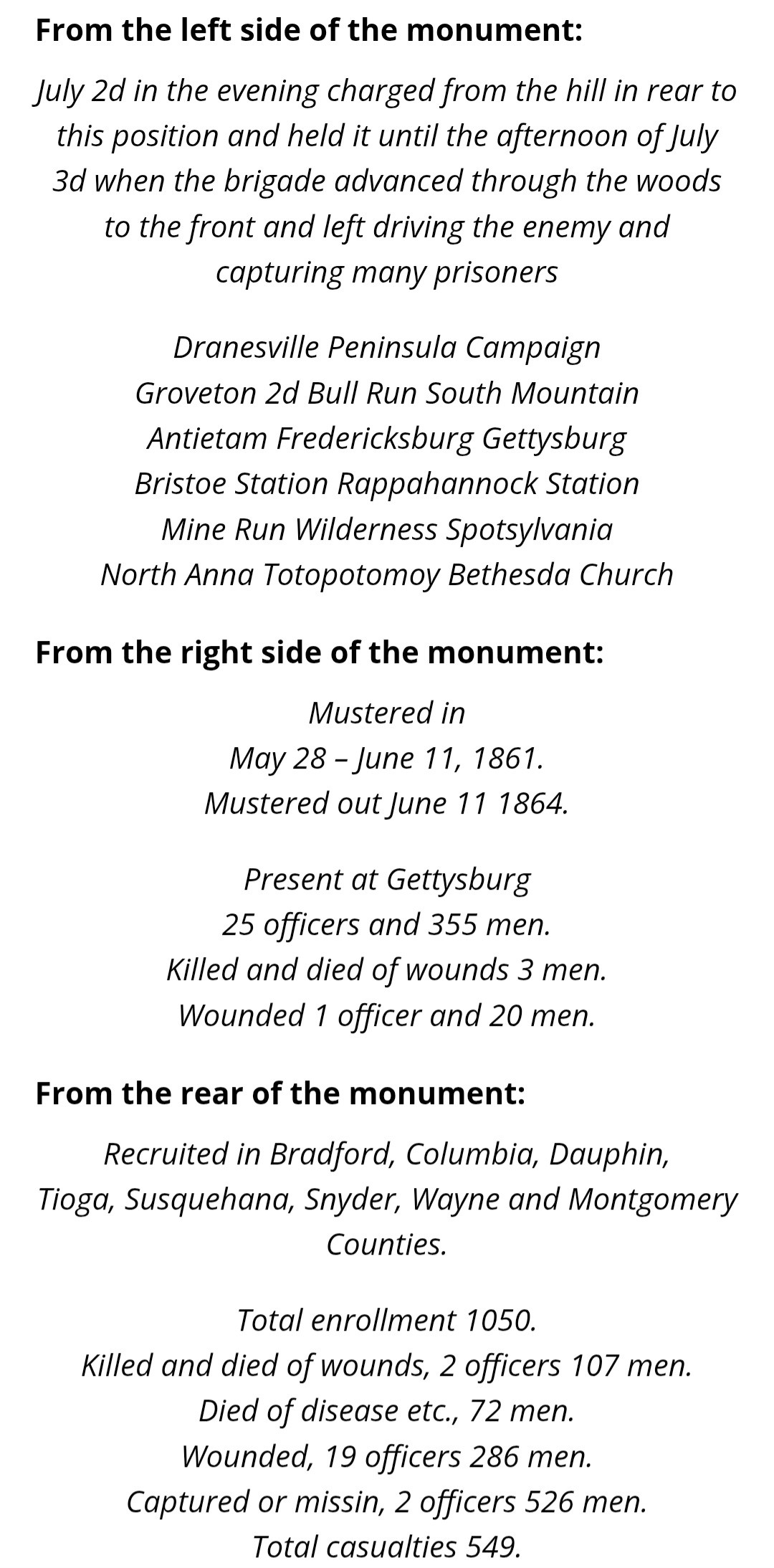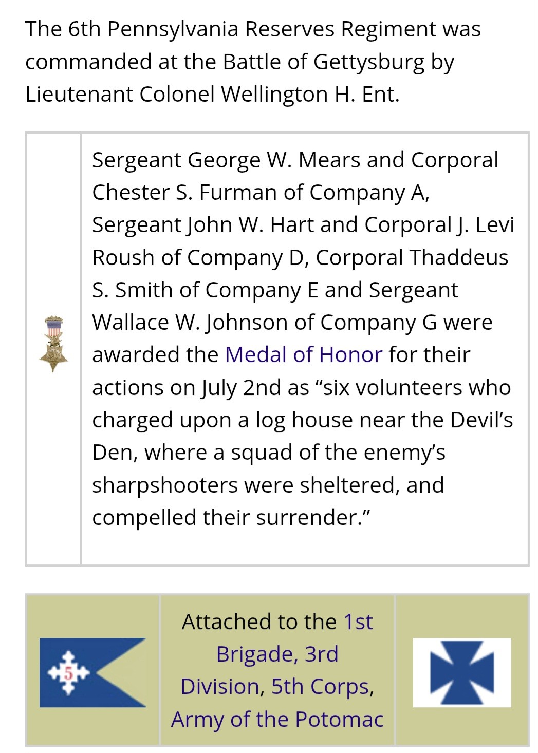 6th PENNSYLVANIA RESERVES - GETTYSBURG - VRC