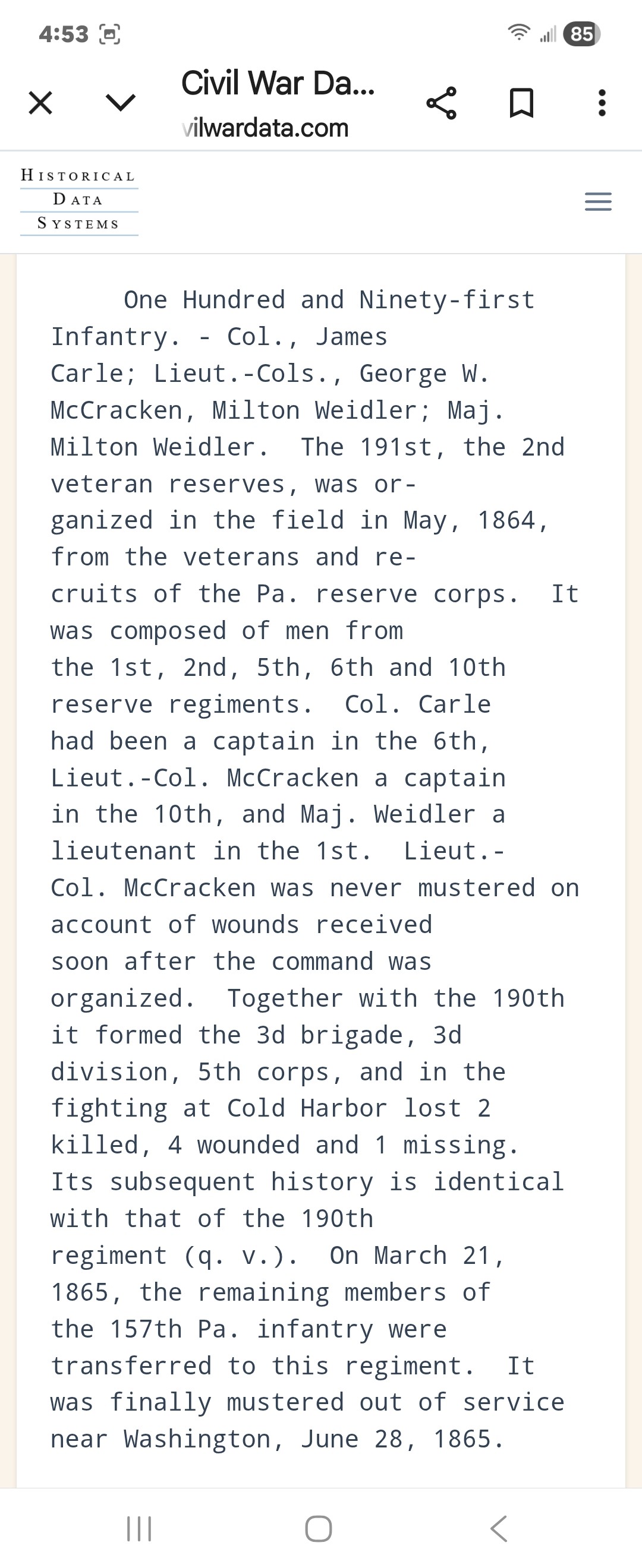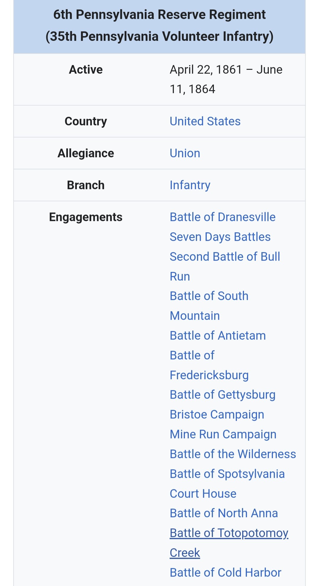 AFTER THE 6TH PA RESERVES MUSTERED OUT THEY JOINED THE 191ST PA INFANTRY AS VRC.