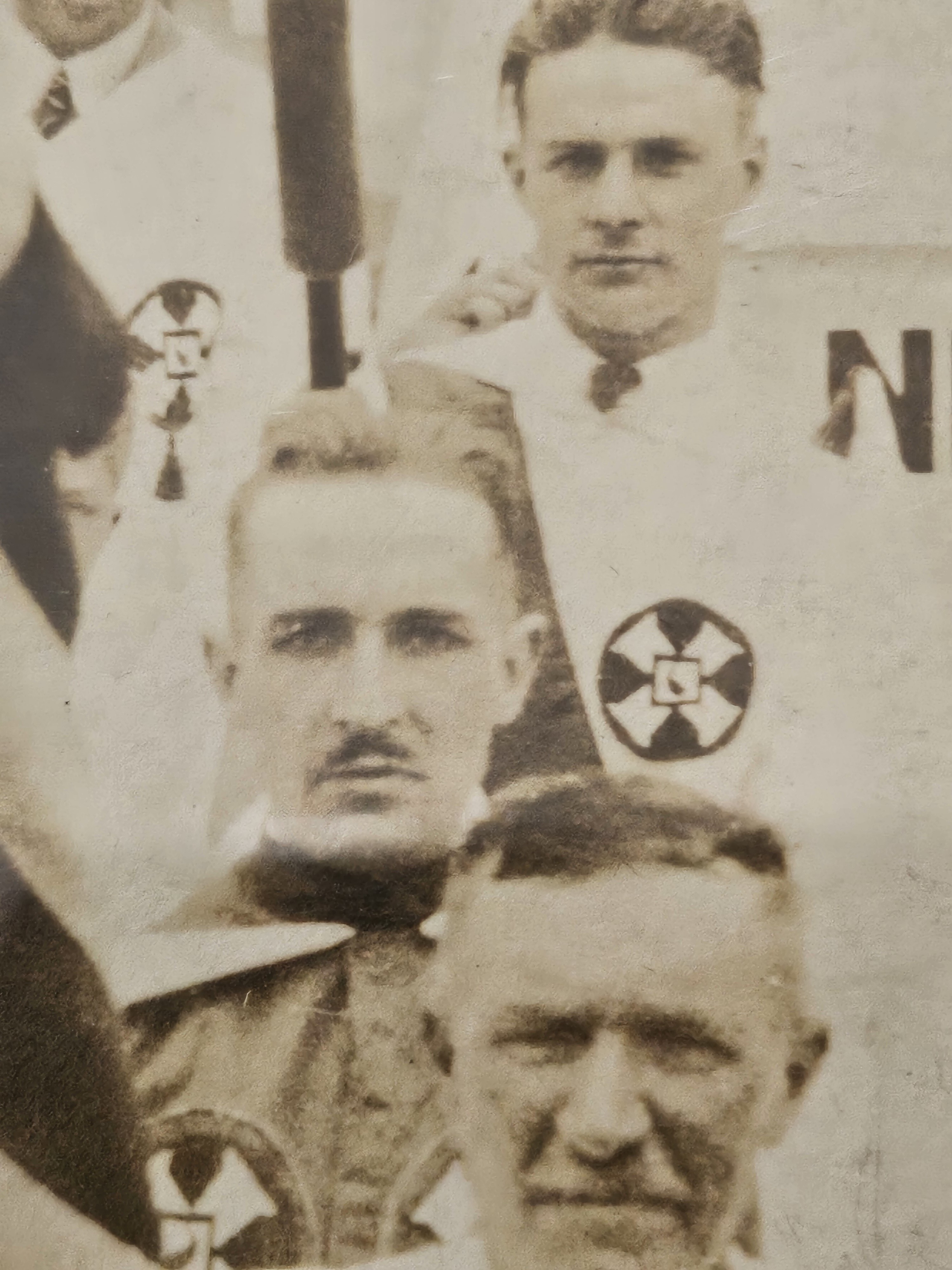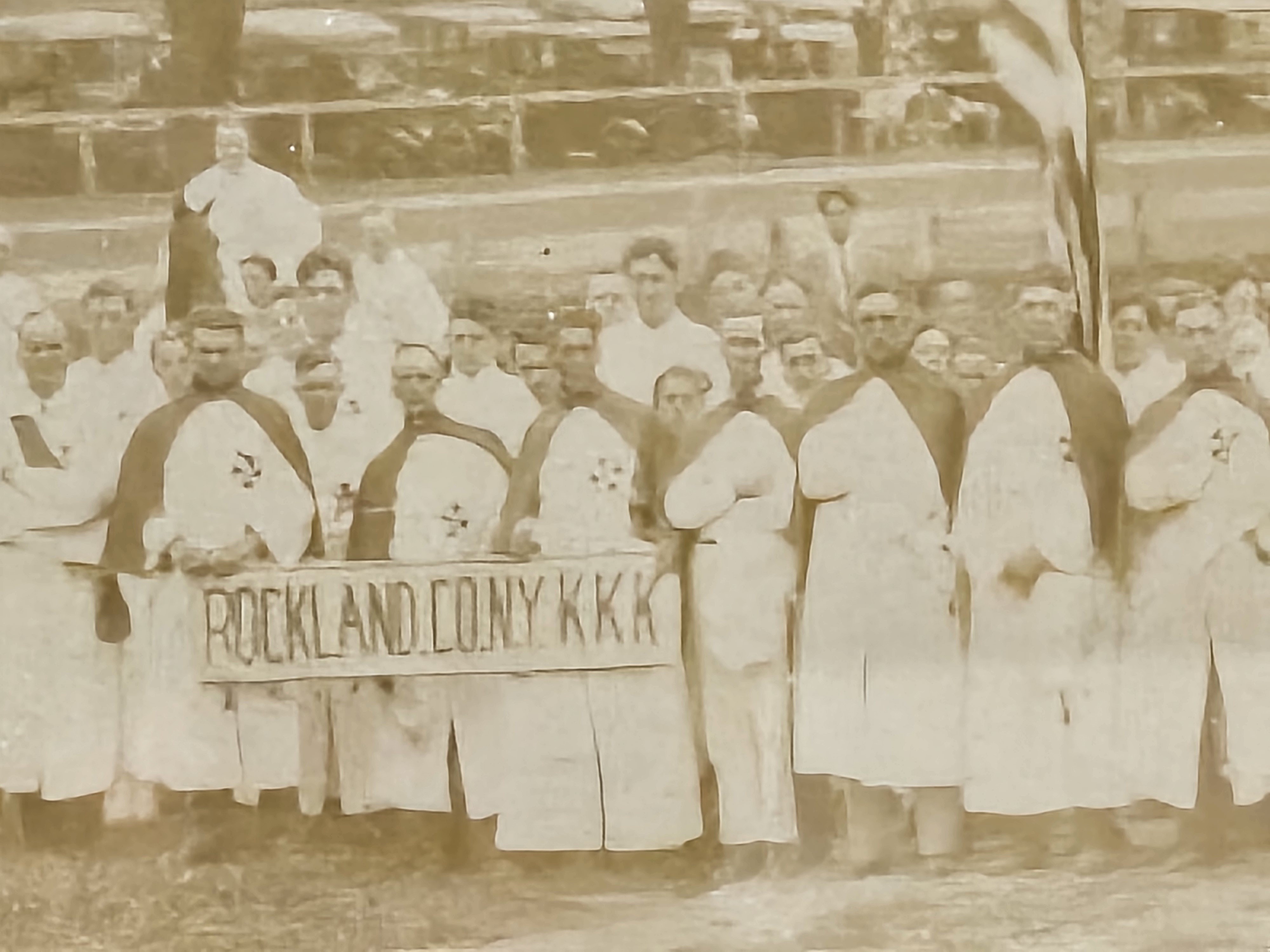 I see roughly 9 banners and one large cross in the crowd. I've included some info I found about this rally in the photos above. They were permitted to hold a parade as long as they did not wear any hoods or face coverings. Some of the larger banners are from Rockland County and Northpoint #6. Some members seen on horseback.