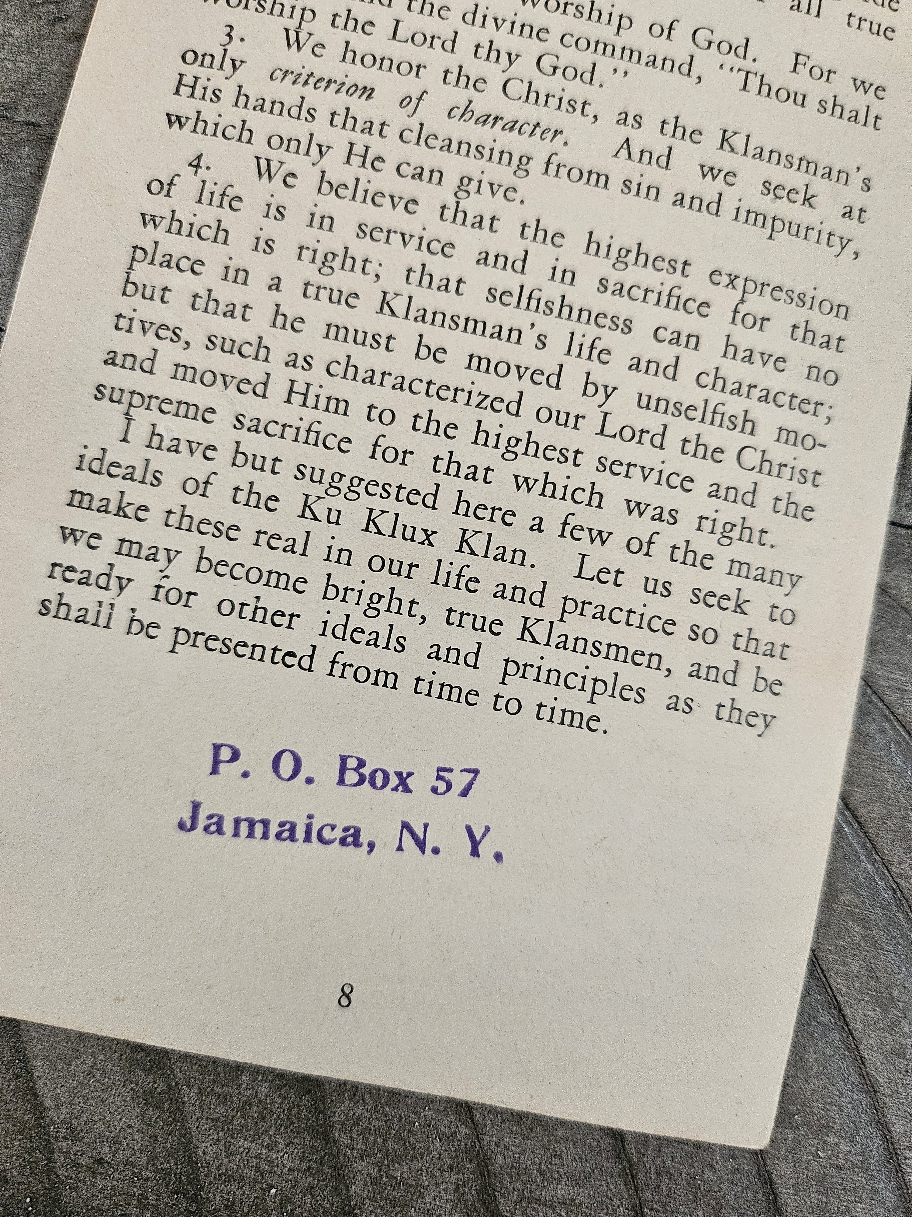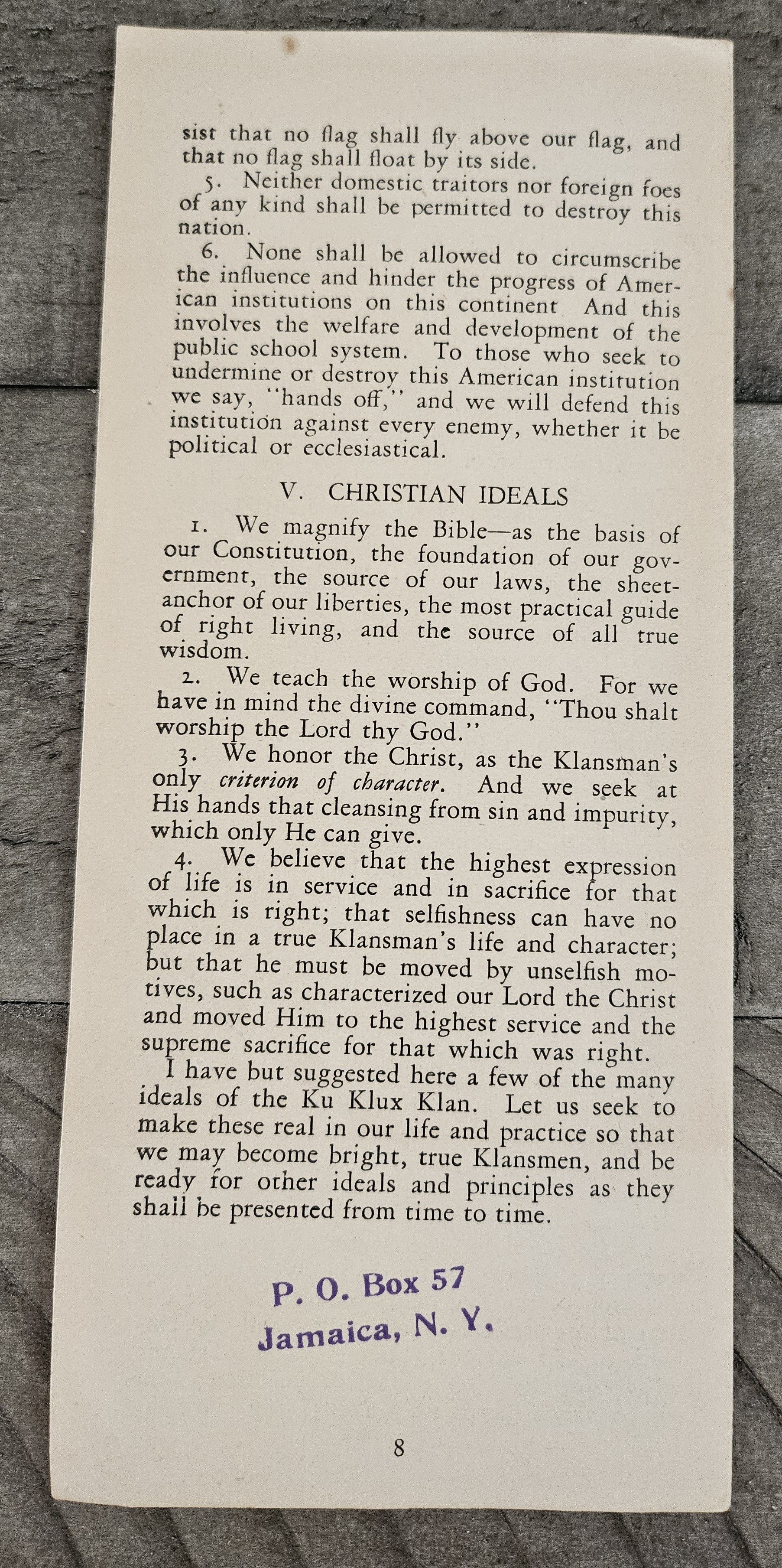 IDEALS OF THE KU KLUX KLAN / JAMAICA NY